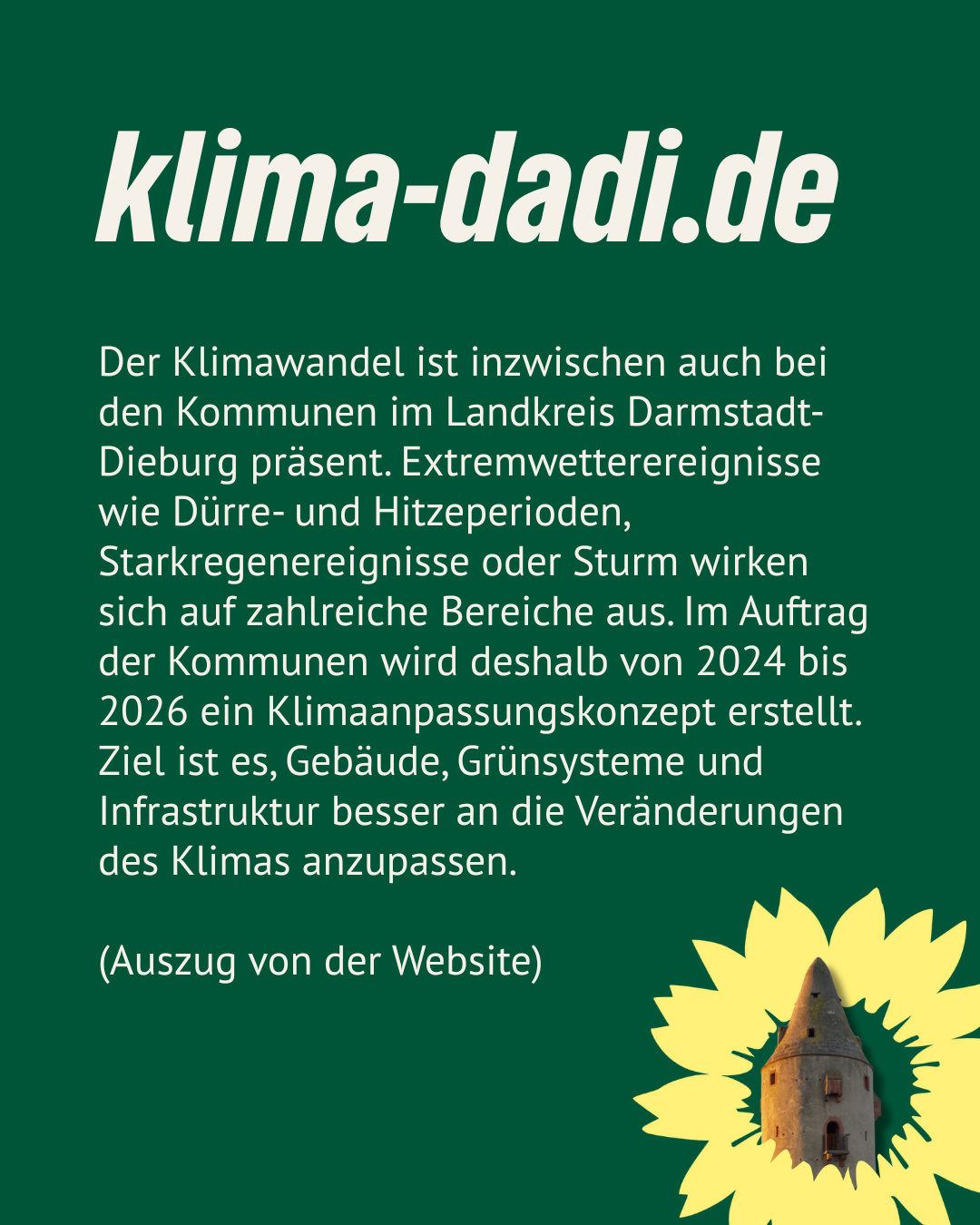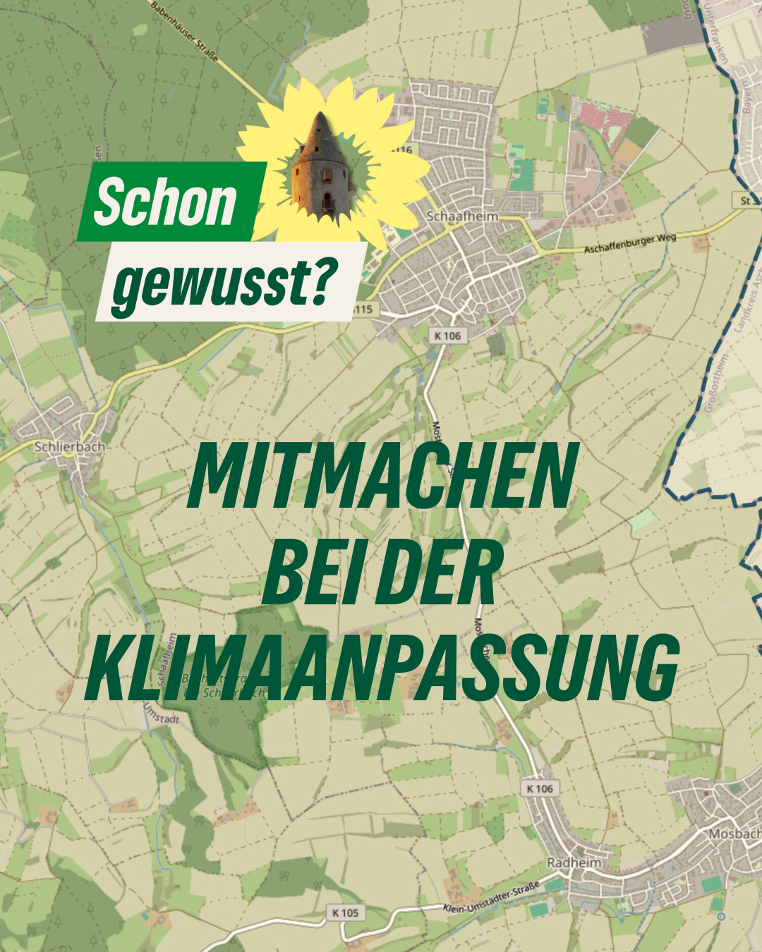 Ihr könnt und solltet euch beteiligen. Im Landkreis wird ein Klimaanpassungskonzept entwickelt. Damit unsere Kommune sich dort wiederfindet, sollten wir alle etwas dazu beitragen. Die CDU Schaafheim hat es bereits angeteasert, danke dafür. Wir finden das gut und beteiligen uns. Seid auch ihr dabei und schreibt uns, was ihr davon haltet. 💚